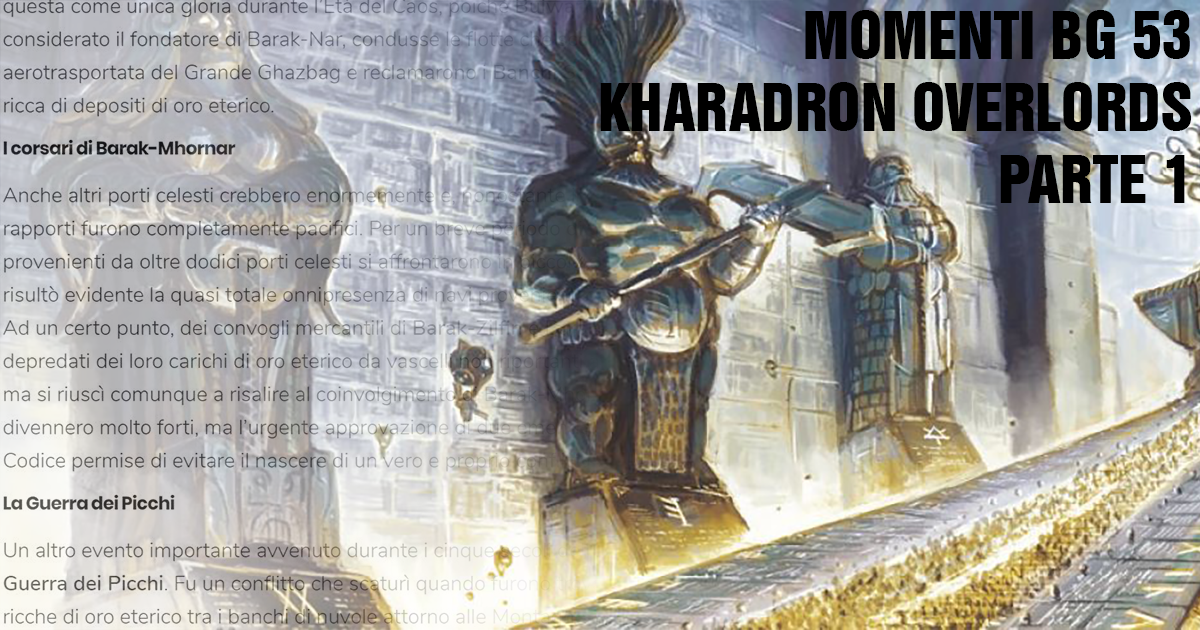 I Kharadron Overlords sono uno dei popoli più strani dei Reami Mortali. Mentre le razze naniche della maggior parte della letteratura fantasy sono abbinate a una vita sotterranea e legata a roccaforti nelle montagne, qui ne vediamo una che parte da queste origini, ma poi si differenzia in modo del tutto originale diventando un popolo molto più legato ai cieli. In questo lungo articolo di Momenti BG, di cui ora potete leggere la prima parte, vedremo come questi duardin, nel tentativo di sopravvivere alle catastrofi, abbandonarono la venerazione delle divinità scegliendo di votarsi al miglioramento tecnologico e all’affermazione personale. Si tratta di quello che spero si dimostri essere una sorta di enciclopedia sui Kharadron, uno strumento utile per chiunque voglia conoscere questa razza e capire meglio chi sta portando sui campi di battaglia o magari per impersonare un duardin di questa civiltà in un gioco di ruolo. Mentre Momenti BG 50 è stato un ampio discorso sugli Stormcast, ma più concentrato sulla Riforgiatura, Momenti BG 53 vuole essere un approfondimento completo sull’intera civiltà, qualcosa che in futuro spero di riuscire a replicare anche per altre civiltà dei Reami Mortali e poi chissà, magari anche per alcune del tetro e lontano futuro di Warhammer 40.000.