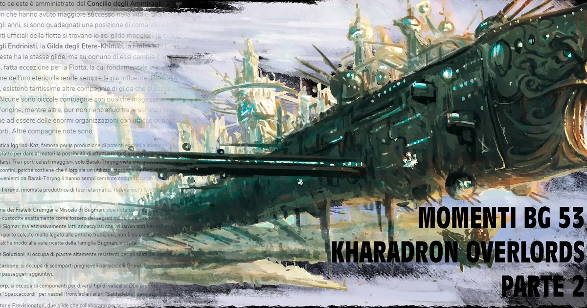 Rieccoci qui, cara gente! Dopo un inizio a cannone con la prima parte dedicata a tutta la sezione storica sui Kharadron, si va ad approfondire meglio la società e l’economica dei luoghi che abitano. I porti celesti sono posti unici nei Reami Mortali, quindi capiremo meglio come vengono gestiti e quali sono le grandi gilde e compagnie che rendono i Kharadron una civiltà di grandi commercianti e lavoratori.