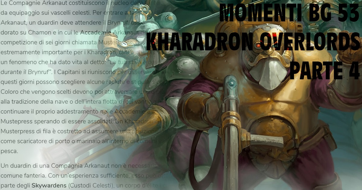 Avete letto di grandi porti celesti e di altrettanto grandi duardin che li abitano e li lasciano per compiere imprese o scorribande. Ma come sono organizzate queste flotte celesti, quali sono le navi create dal popolo Kharadron e cosa si sa della famosa armatura Arkanaut? La quarta parte di Momenti BG 53 fornisce tutte le risposte.