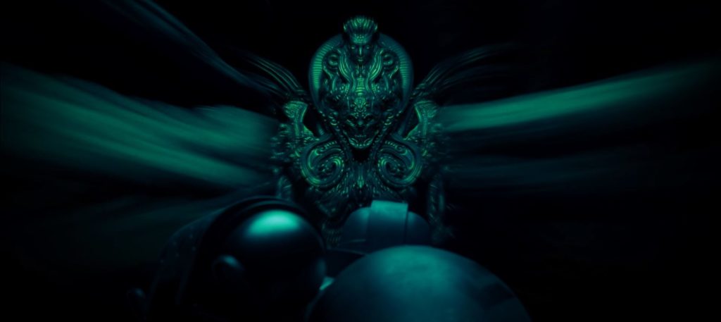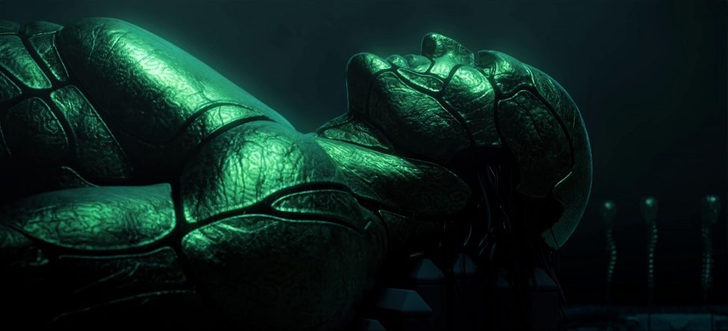 Kohren atterra in un luogo che è quasi la destinazione voluta dallo xenos e finalmente scopriamo un volto. Intorno al Retributor troviamo un enorme passaggio fiancheggiato da tantissimi corpi giganteschi e apparentemente mummificati, tra cui alcuni seduti su dei troni e vestiti di qualcosa che copre le spalle e contorna il collo. Stiamo parlando di un’inquadratura che ricorda molto le opere di Zdzisław Beksiński, un pittore, fotografo e scultore polacco specializzato nel surrealismo distopico con una costante concentrazione verso temi legati all’apocalisse e al macabro. La struttura dei corpi e l’intera composizione della scena richiama moltissimo i suoi lavori.