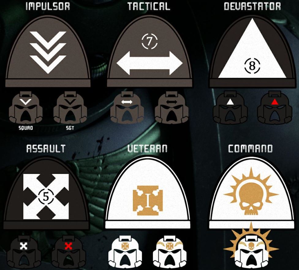 La maggior parte dell’organizzazione capitolare segue i dettami del Codex Astartes. L’unica eccezione rilevante è l’uso delle squadre di Impulsor. A prima vista, gli Impulsor appaiono molto simili al ruolo coperto dalle Squadre Tattiche, poiché sono preparati in ogni aspetto della guerra e si equipaggiano in modo da soddisfare i requisiti tattici di una situazione al posto di specializzarsi in un particolare ruolo o nell’utilizzo di armi ben precise. Ciò che differenzia gli Impulsor dai Marine Tattici il loro ruolo di operatori indipendenti in avanscoperta. Tramite regimi d’addestramento addizionali liberamente ispirati all’Adeptus Custodes, li Impulsor sono capaci di agire con molta più indipendenza rispetto al tipico Space Marine, essendo in grado di passare senza problemi da una squadra coordinata ad individui che portano avanti l’obiettivo della missione autonomamente in base alla situazione. Per questo motivo, gli Impulsor sono le unità ideali per condurre operazioni dietro le linee nemiche o come punte di lancia per assalti diretti a bersagli chiave. Quando vengono inviati per supportare altre forze Imperiali, spesso l’invio di una singola squadra di Impulsor può avere un maggiore impatto rispetto allo schieramento di un’intera compagnia.
