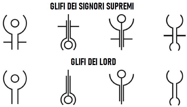 I Necrontyr non disegnano un glifo fatto a forma di Signore Supremo per simboleggiare un Signore Supremo all’interno di una frase, ma usano sempre un sistema di cerchi di dimensioni differenti e linee che li collegano o fungono da “appendici”. Questa scrittura prende ispirazione dall’Ankh, simbolo che in Warhammer 40.000 rappresenta il Triarcato, ma che nella realtà è un antico simbolo egizio che rappresenta la vita, l’immortalità e vari altri concetti particolarmente legati all’Antico Egitto.