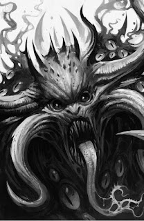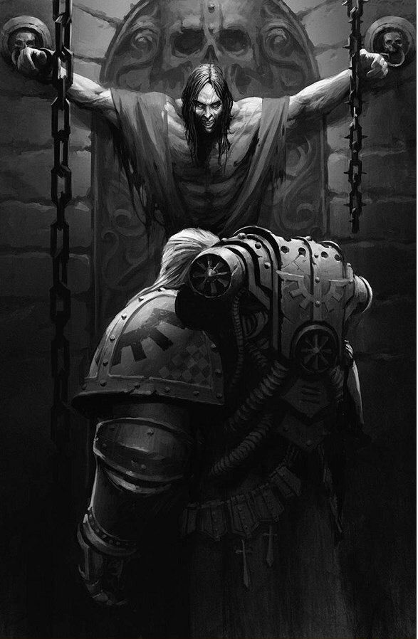 Improvvisamente un rumore come quello di un tuono. La Veritas Ferrum tremò, quasi raggiungendo il collasso della sua esistenza. I demoni nel Delphos caddero in preda alle convulsioni miste ad urla di agonia. Sanguinius fu visibile all’entrata del portale, la Lama Encarmine e la Lancia di Telesto conficcate nel torso di Madail. Azkaellon e le Guardia Sanguinarie erano dietro di lui, così vicini eppur così lontani. Sanguinius aveva scelto, si sarebbe sacrificato lì, in quel momento, ma poi si rese conto della Rabbia Nera che si arrampicava attraverso la sua testa. La sua morte avrebbe causato lo stesso risultato, indipendentemente dal luogo. Per mano di Horus o su Davin, lo shock avrebbe comunque colpito i suoi figli, ma almeno avrebbe potuto salvare l’Imperium. Il portale ruggì, poi arrivò un’altra figura.