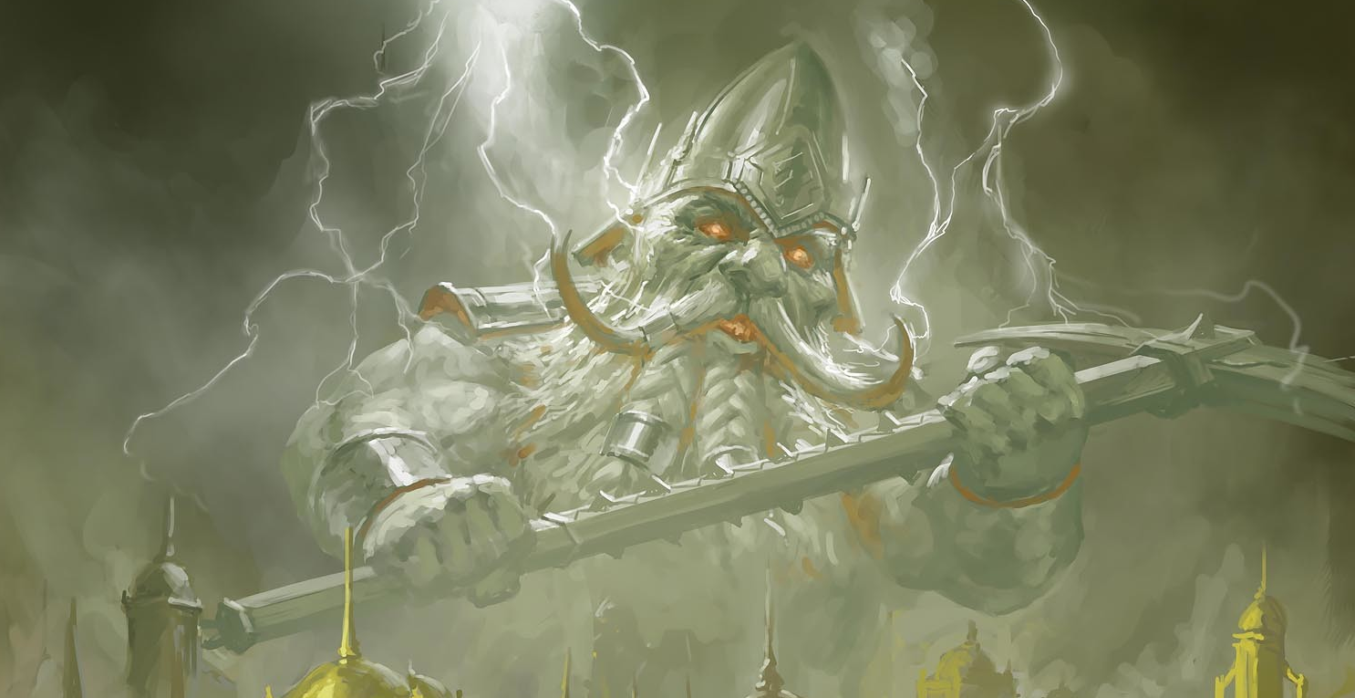 - Tonante: simile al classico Heldenhammer, poiché rappresentato da un uomo con armatura dorata e araldica celestiale, ma plasmato dall’unione del vento con la luce delle stelle e il suono di un tuono lontano. Sigmar assunse spesso questo aspetto durante l’Età del Mito, quando il suo pantheon era ancora unito solidamente.