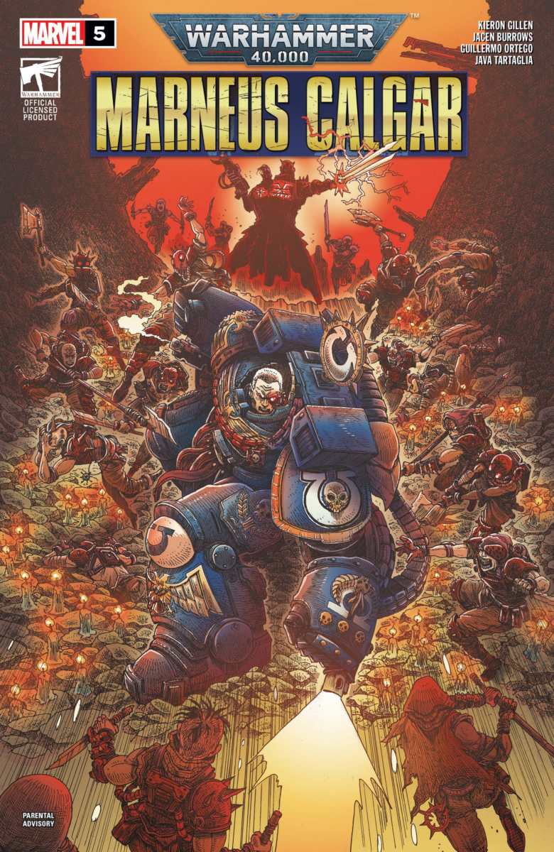 Il numero si conclude tornando al presente. Una Guardia Cadiana raggiunge Marneus e gli dice che le Tenute Calgar sono state conquistate. Sarà mica perché Calgar ha sbagliato ed è stato colto alla sprovvista? No, in realtà Calgar aveva un piano formidabile: dire su un canale non protetto che gli Ultramarine si sarebbero concentrati sull’attacco nemico più grande ignorando i restanti, così gli eretici si sarebbero raggruppati per attaccare le Tenute.