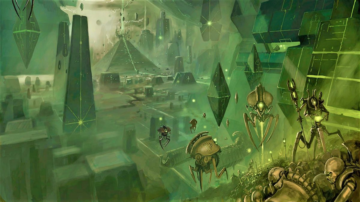 Yggra’nya, il Plasmatore di Mondi, fu vincolato e spezzato dai suoi stessi poteri; Thyssak’lha, la Rovina Ambulante, l’Ombra che Avvizzisce i Mondi, fu attirato affinché attraversasse il Cancello Inevitabile e venisse frammentato dal vuoto oltre di esso. Che questo evento sia anche un’indicazione sul motivo per cui si dice che dei C’tan risiedano oltre i cosiddetti Cancelli di Varl? Altri ancora, in un modo o nell’altro, furono ridotti in pezzi, finché i Necron non si poterono dichiarare vittoriosi. La realtà, tuttavia, venne irreparabilmente danneggiata.