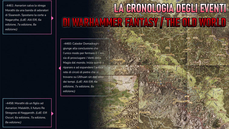 2520: Il Sommo Mago Torinubar, Mago Lord dei Cancelli di Calith, viene misteriosamente ucciso. Non viene trovato nessuno dei tipici segni degli Elfi Oscuri. (LdE: Skaven, 7a ed.;)