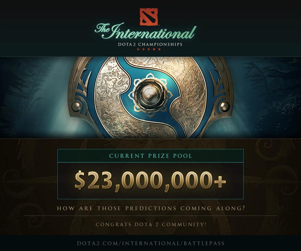 Parliamo adesso del prize pool: anche quest’anno la community di Dota 2 ha saputo superare sè stessa, superando la soglia dei 23 milioni di dollari e diventando ancora una volta il torneo di esport col montepremi più alto della storia!