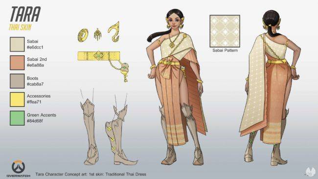 Il nome della sua creazione è Tara, un’eroina di origine tailandese con un design incredibile che comprende armi e diversi schizzi che potrebbero essere presi da Blizzard pari pari e sembrare un lavoro eseguito proprio dai designer dell’azienda americana. Purrfait ha deciso di condividere la sua opera nei forum ufficiali del gioco. È talmente accurato che nei bozzetti è possibile trovare anche skin alternative e un profilo del personaggio.