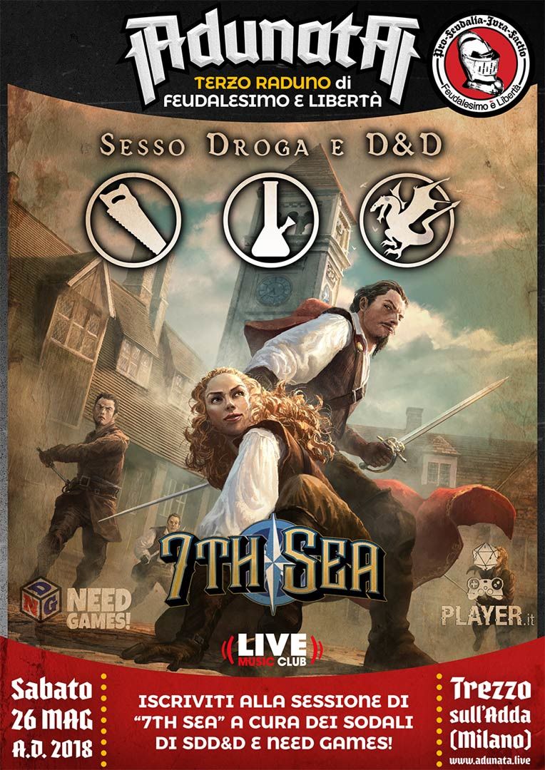 Per l’evento faremo una sessione di 7th Sea multitavolo per 12 giocatori, master by SDDND e Need Games!, con una nostra diretta streaming.