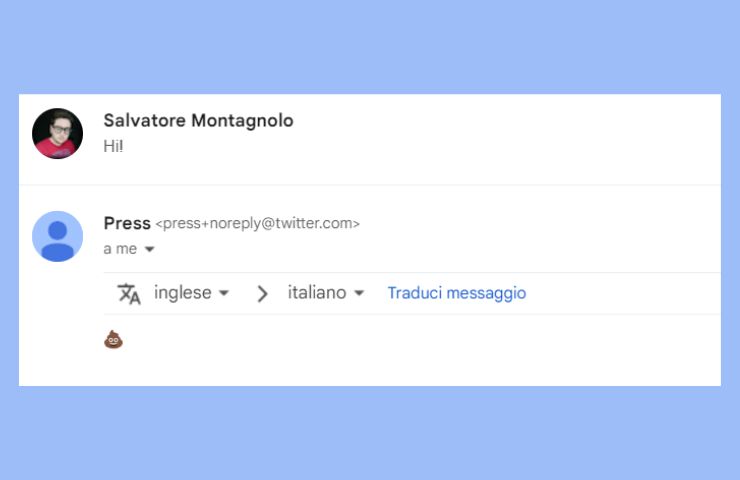 So cosa state pensando: no, non si tratta di un tweet ironico e per dimostrarlo ho mandato io stesso una e-mail all’agenzia stampa di Twitter e questo è il risultato: