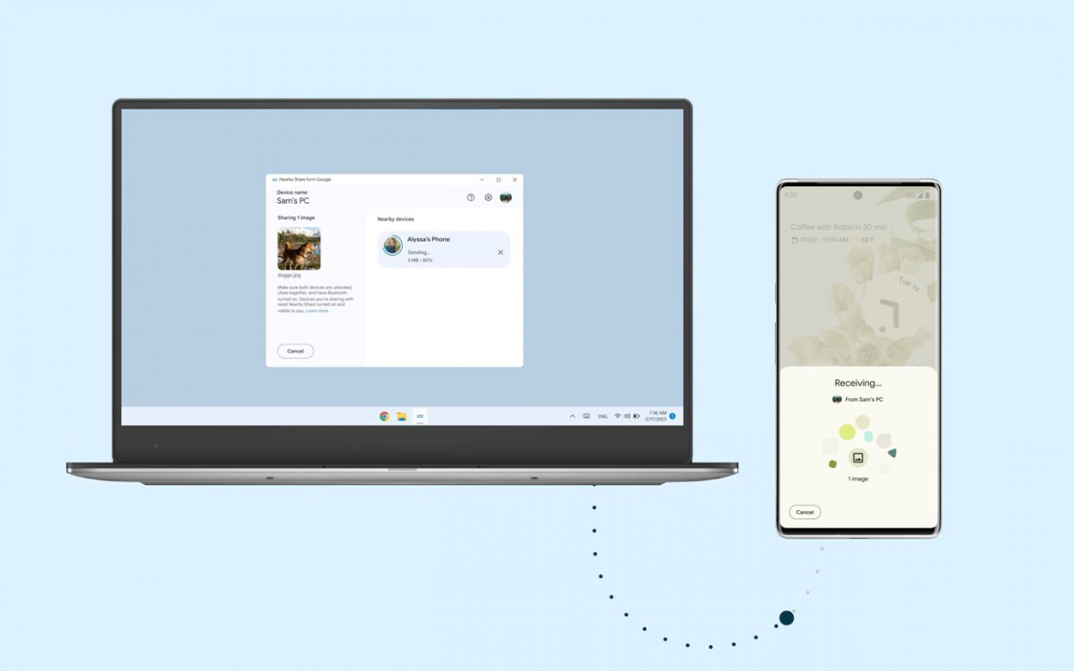 Google sta portando Nearby Share su PC, una funzione che consente agli utenti di condividere rapidamente e facilmente diversi tipi di file – come immagini, video, documenti, link e tanto altro – tra i vari dispositivi Android.