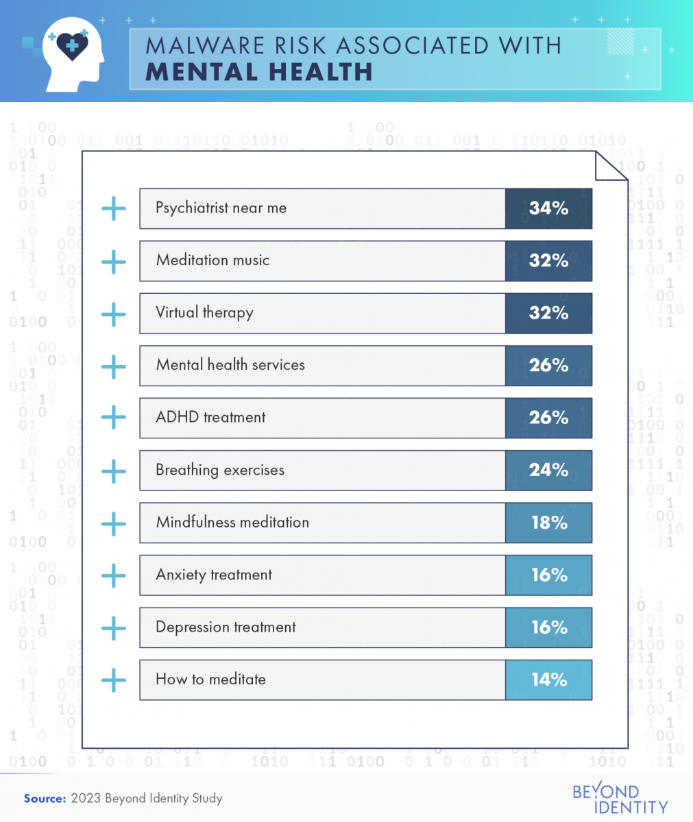 L’allarme è stato lanciato da Beyond Identity, una compagnia specializzata nella sicurezza informatica, che ha analizzato la pericolosità di ricerche in rete connesse ad argomenti inerenti terapia virtuale, meditazione e disturbi dell’ansia. I risultati della ricerca sono sorprendenti: a quanto pare esiste un rischio elevato che ricerche online di questo tipo conducano a link e siti malevoli, in grado di installare surrettiziamente malware nei PC degli utenti, tramite cui ottenere accesso ai loro dati personali, finanziarsi e di qualsiasi altro tipo.