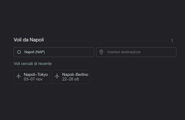 Digitando semplicemente “voli” o “flights” nella barra di ricerca di Google c’è invece la possibilità di prenotare un volo con il massimo delle opportunità.