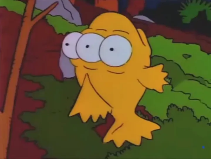 Il pesce a tre occhi di Springfield viene usato nella serie, per rappresentare lo stato d’inquinamento delle acque della città, specialmente in prossimità della centrale nucleare (o nuculare?) del Signor Burns. Il pesciolino triclope venne utilizzato pure come cameo in una puntata di Futurama. Nessuno si aspettava però, di ritrovarselo nella vita reale.