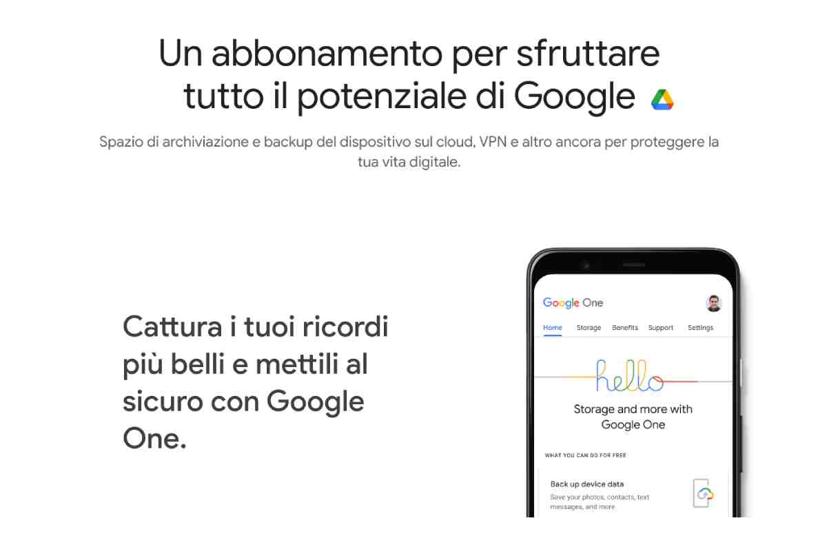 - Google One 100GB a 1,99€ mensili (i primi tre mesi saranno gratuiti, attivabili una sola volta).