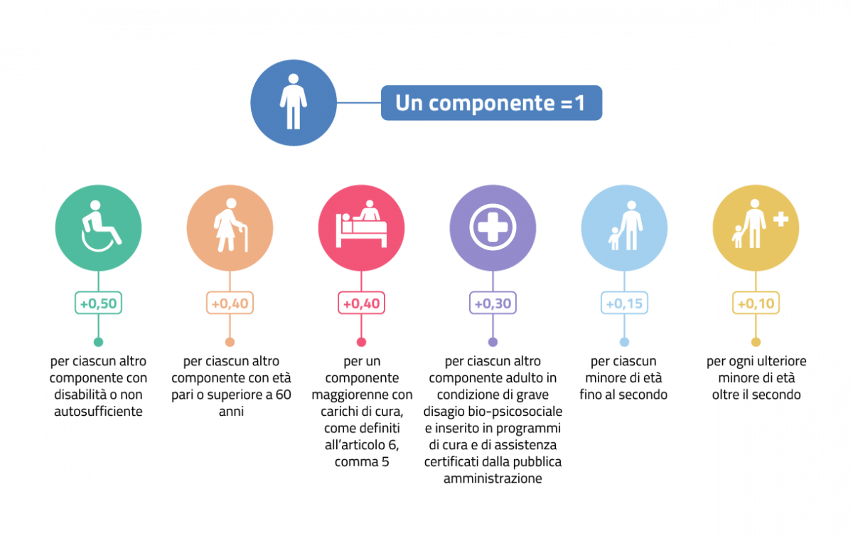 - un valore del reddito familiare inferiore ad una soglia di euro 6.000 annui moltiplicata per il corrispondente parametro della scala di equivalenza di cui in seguito. Se il nucleo familiare è composto da persone tutte di età pari o superiore a 67 anni, ovvero da persone di età pari o superiore a 67 anni e da altri familiari tutti in condizioni di disabilità grave o di non autosufficienza, come definite dall’allegato 3 al DPCM 159/2013, la soglia di reddito familiare è fissata in euro 7.560 annui, moltiplicati per il corrispondente parametro della scala di equivalenza.