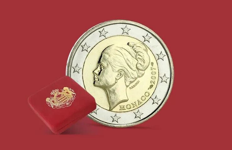 La moneta in questione appartiene al Principato di Monaco e ritrae la figura sul retro della famosa attrice di Hollywood Grace Kelly: la moneta in questione è stata coniata nel 2007 in occasione del 25° anniversario della morte della star del cinema che, come è risaputo, ha sposato il Principe Ranieri III divenendo di fatto monegasca d’adozione e principessa consorte.