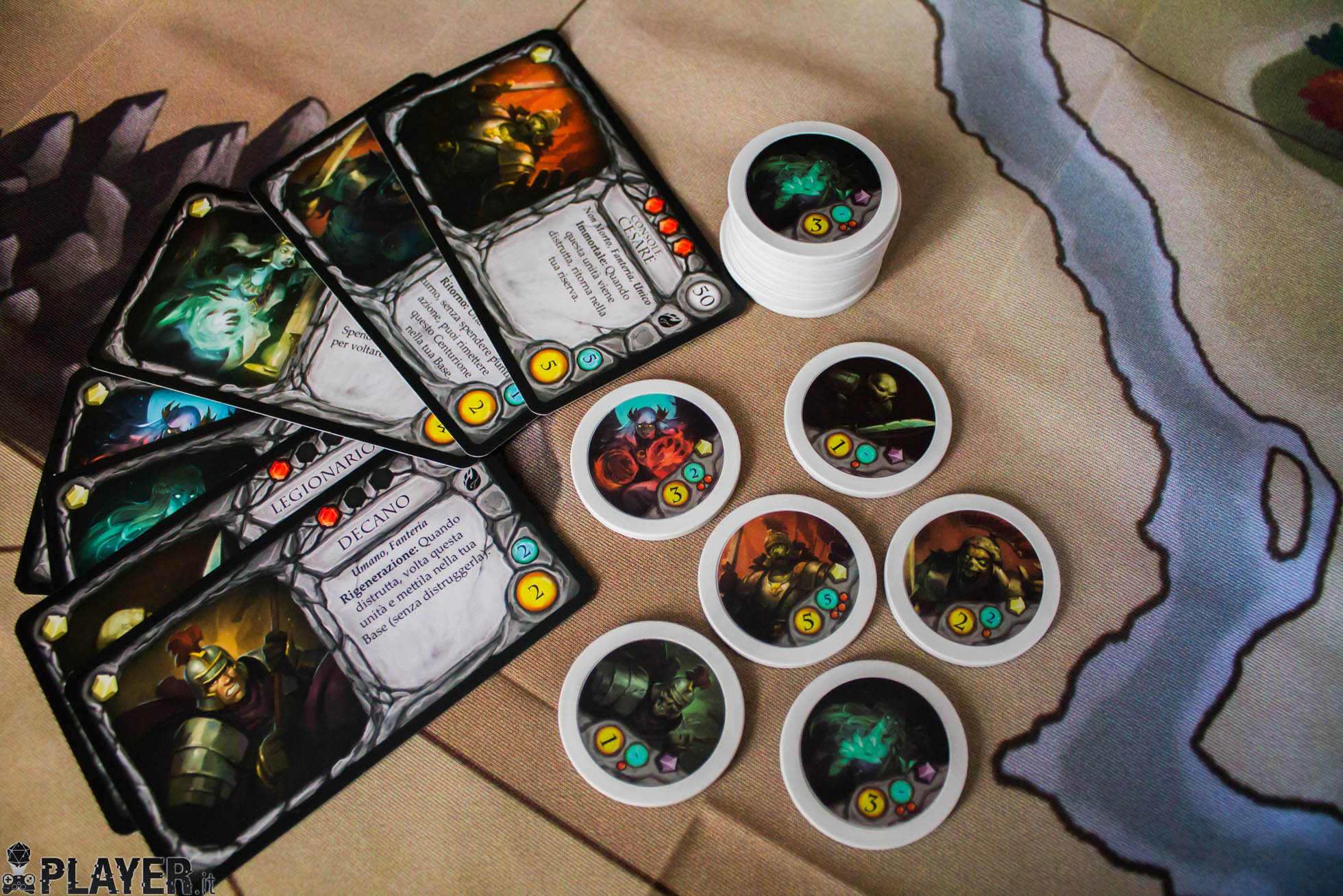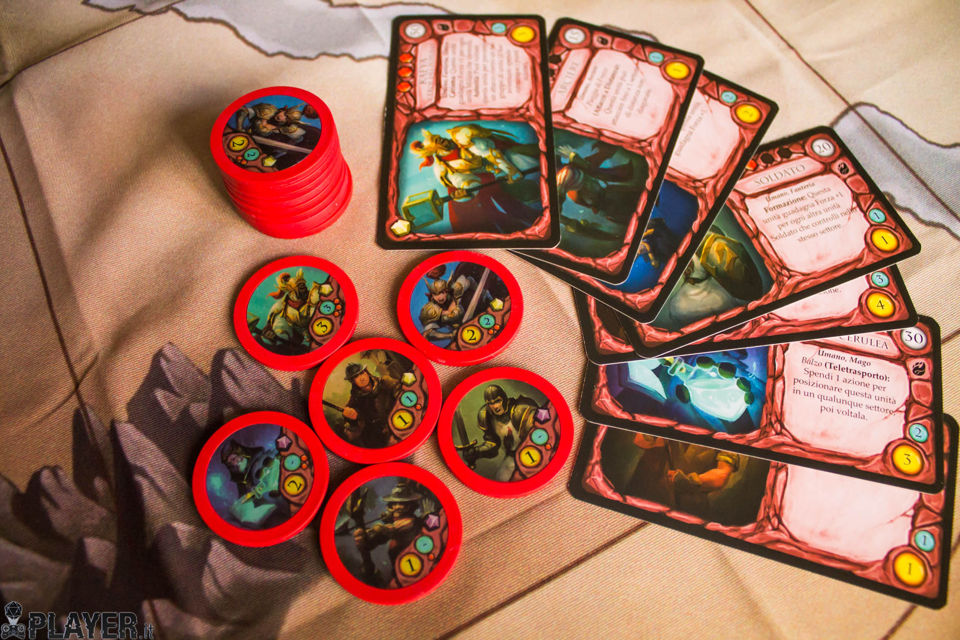 Come detto prima Warstones è un gioco che metterà alla prova la nostra abilità di far viaggiare le fiche grazie a poderose schicchere, con questo gesto sarà possibile non solo muovere le nostre truppe sul campo di battaglia ma anche sbaragliare le formazioni avversarie buttandole fuori dal tabellone qualora i nostri valori d’attacco non superino quelle del nemico.