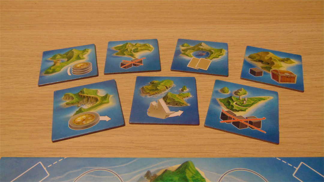Fortunatamente aggiungere carte Mappa non è l’unica azione che i cercatori di tesori possono fare, infatti è anche possibile utilizzare uno dei sette Isolotti disponibili, i quali offrono effetti particolari come spostare la Nave su un altro approdo, pescare subito un tesoro, rimuovere segnalini Maledizione e molti altri.