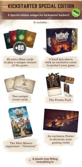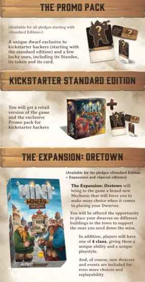 Mini Miners è un gioco competitivo adatto a tutta la famiglia, dai 2 ai 4 giocatori, la cui partita dura in media 60 minuti. Questo gioco può essere apprezzato da ogni tipo di giocatore, in quanto saranno presenti due set di regole: quelle base per i giocatori più esperti e quelle semplificate per i novizi o i più giovani. In questo gioco diventeremo dei nani capi di una miniera. Il nostro compito sarà quello di estrarre più oro possibile dalla nostra miniera.