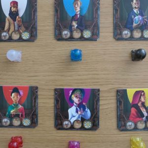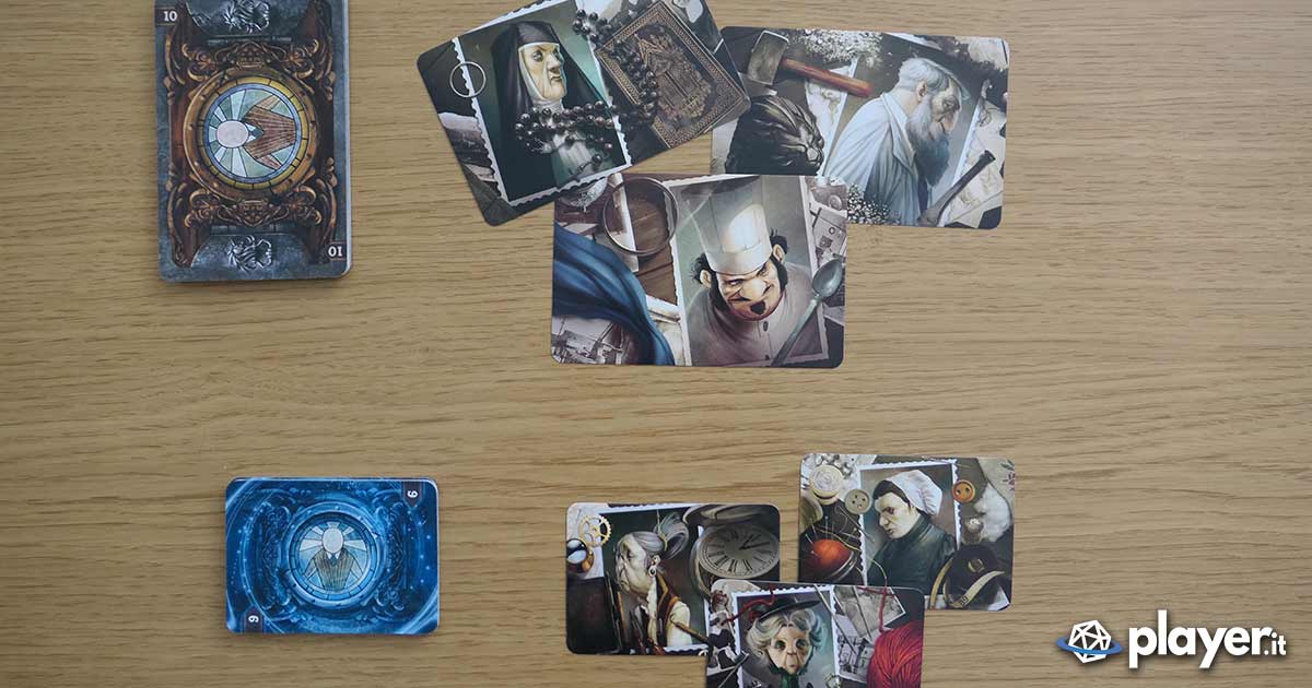 La cura generale posta nel gioco dai due autori è stata davvero maniacale. Mysterium è l’evoluzione più completa de Il Sesto Senso, primo gioco degli stessi autori e che presentava carte meno ricche di dettaglio e contenuti più scarni. Facendo un confronto potremo parlare de Il Sesto senso quasi come di un prototipo che trova la piena realizzazione in Mysterium, aggiungendo elementi anche solo per il feticismo della componentistica. L’orologio di cartone con tanto di lancetta semovente è, ad esempio, una di queste aggiunte. Uno strumento quasi superfluo ma, come si suol dire, “Il diavolo è nei dettagli” e vi assicuro che ogni volta che aprirete la scatola del gioco ne coglierete sempre uno diverso.