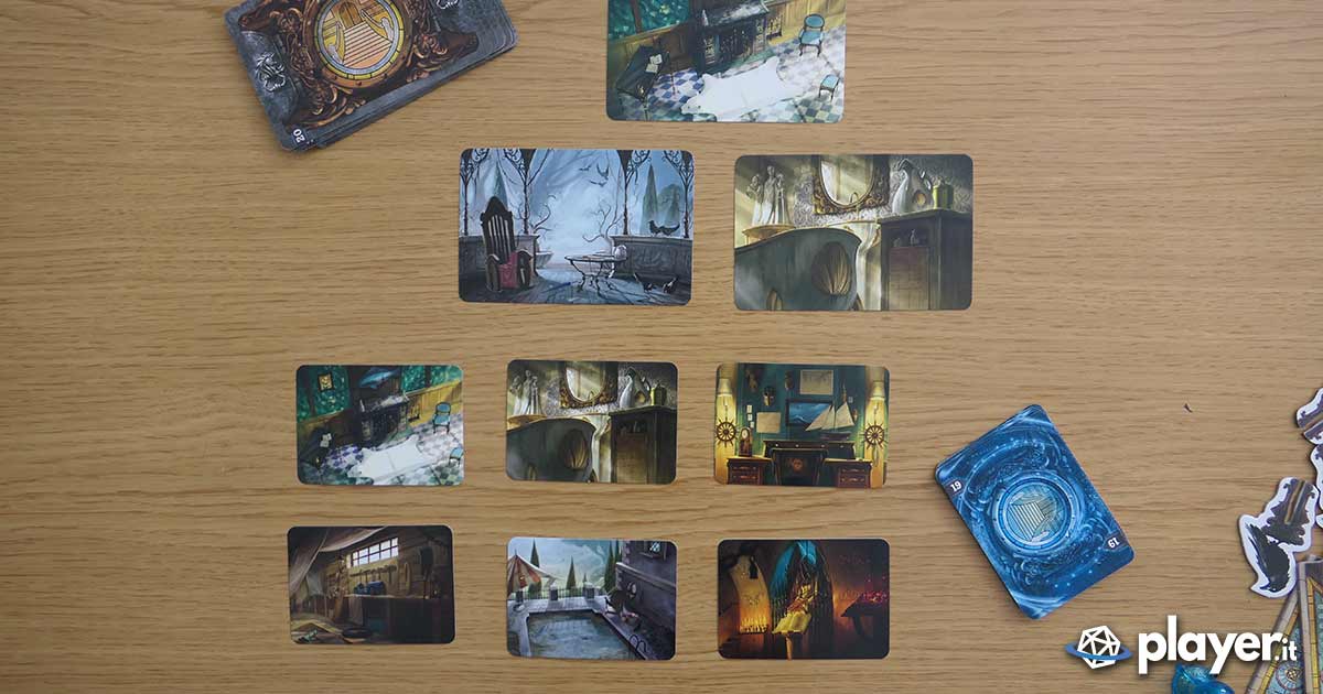 Detto questo, preparare il tutto richiede circa 15 minuti, non tanto per montare la scenografia quanto per dividere le carte tra fantasma e plancia di gioco. Ogni carta Medium presenta la stessa immagine e numerazione delle Carta Fantasma. All’inizio della partita vanno quindi scelte tot. Carte Medium – dove tot. cambia a seconda della difficoltà scelta e dei giocatori – e le relative Carte Fantasma. I Medium disporranno le Carte Medium scelte a tavola, divise tra Personaggi, Luoghi e Oggetti, mentre il fantasma sceglierà tra le Carte Fantasma solo un Personaggio, un Luogo e un Oggetto per ogni giocatore, infilando le carte nel rispettivo alloggiamento dietro al tabellone.
