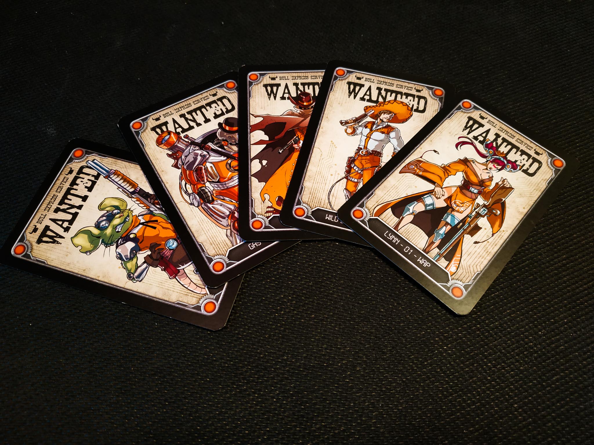 Se un giocatore svela un bandito questo verrà aggiunto alle carte già presenti sul tavolo ma quando viene estratta la carta Wanted è lì che comincia il bello, i giocatori dovranno simultaneamente cercare di catturare lo stesso bandito raffigurato sulla carta Wanted mettendo su di loro una mano il prima possibile. Ogni bandito ha un punteggio diverso che verrà calcolato a fine partita. Altre carte come lo sceriffo o la rissa permetteranno di compiere nuove azioni, come essere immuni alla fuga dei cyborg catturati o il poter catturare con entrambe le mani. Il igioco termina quando un giocatore svela la carta The End.