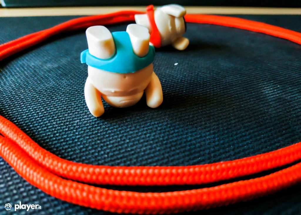 Sumo Slam ci ha dimostrato in queste sere post Play Modena che basta un laccio di scarpa e due omini paffuti per divertirsi offrendo un giochino immediato dall’ottimo rapporto qualità/prezzo. La semplicità delle regole lascerà spazio a momenti di puro delirio mentre il vostro amico avrà fatto atterrare in piedi due sumotori manco fosse un bottle flip. Ogni componente è fatto con ottimi materiali e realizzati con cura per catturare l’occhio del giocatore, complice anche un packaging ad hoc, i due lottatori protagonisti sono di una gomma dura resistente anche ai lanci più estremi. Con un costo contenuto (16/18€ a seconda del sito) e la possibilità di giocarlo virtualmente ovunque, Sumo Slam è il gioco perfetto per chi cerca qualcosa da giocare in viaggio sia con i bambini che con i più grandi.