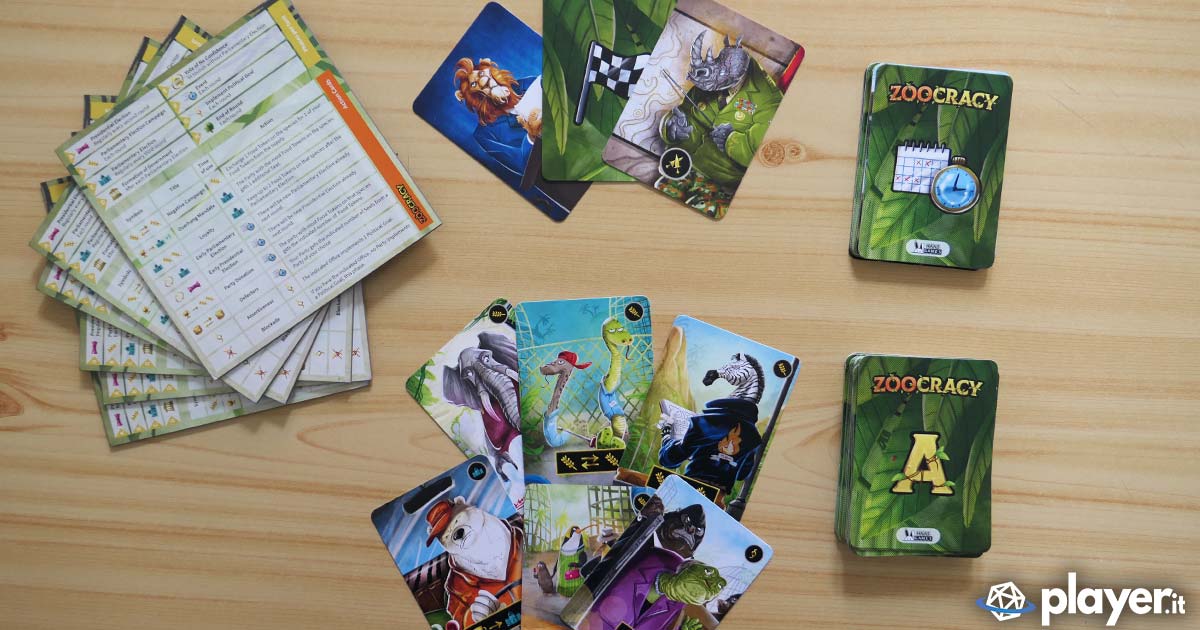 Zoocracy è uno specchio della realtà che deforma la politica umana e la trasforma in una giungla fatta di leoni, gorilla, zebre, tartarughe e quant’altro e dove l’obiettivo finale è affondare denti e artigli nelle deboli fondamenta del governo per realizzare i propri scopi. Tutto questo per un numero di round che varia tra 9 e 12 finché non arriva la carta evento che pone fine alla partita.