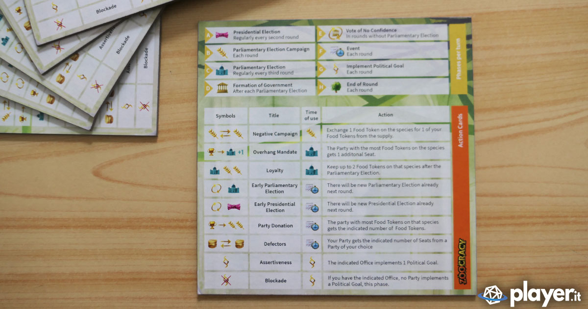 A questo punto si passa alle elezioni parlamentari dove l’ordine di turno e di conseguenza la maggioranza dipenderà proprio dai seggi ottenuti nella fase precedente. Una volta raggiunta una situazione più o meno stabile è ora di parlare della formazione del governo a questo punto ogni giocatore propone la sua coalizione di governo e gli altri votano facendo sentire la propria influenza in base ai seggi ottenuti finché non si arriva ad un governo di maggioranza. Nel caso non si dovesse mai arrivare ad un accordo sarà il presidente a decidere che dovrà però stare attento al voto di sfiducia. Questo voto, che vi assicuriamo fioccherà specie se avete amici particolarmente competitivi, ha il potere di ribaltare le sorti della partita facendo addirittura cadere il governo e costringendo ad un repentino cambio di leadership. Ogni round sarà poi influenzato dall’azione dalle carte evento, degli strumenti di alea che porteranno disordine nel precario equilibrio appena trovato e che andranno ad influenzare spesso il motore dell’economia di gioco, i token del cibo. I partiti affamati infatti difficilmente riusciranno a reggere la carica affidata e a quel punto sarà molto semplice rompere le promesse elettorali fatte con loro e passare al miglior offerente.