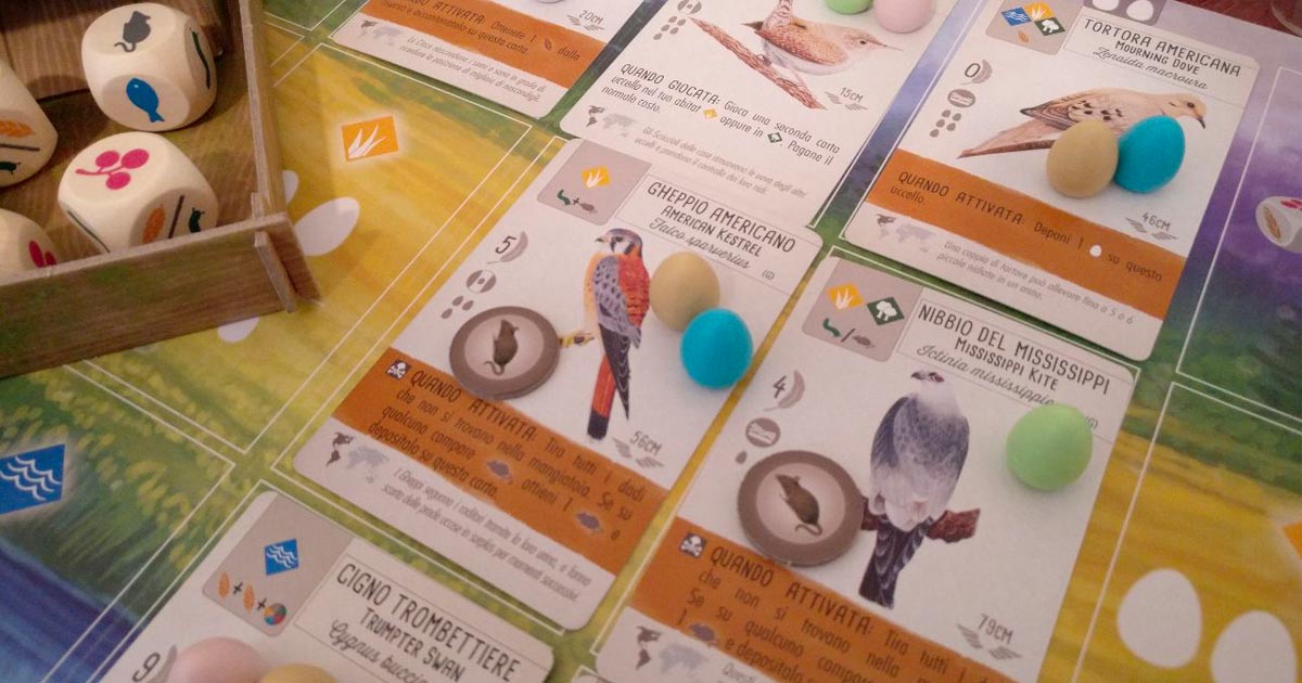 Un altro effetto classico è quello dei rapaci: essi “cacciano” il volatile in cima al mazzo e lo catturano se l’apertura alare di quest’ultimo è inferiore a un determinato valore. Ogni volatile cacciato (così come ogni uovo e ogni cibo rimasto sulle carte volatile a fine partita) vale un punto vittoria. Per non farsi mancare nulla, ogni giocatore inizia la partita con un obiettivo segreto, che può fornire non pochi punti vittoria al termine.