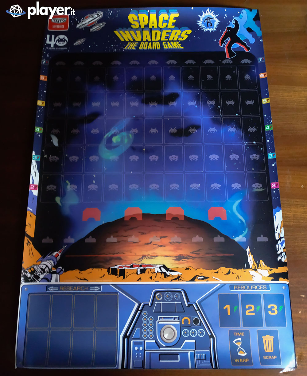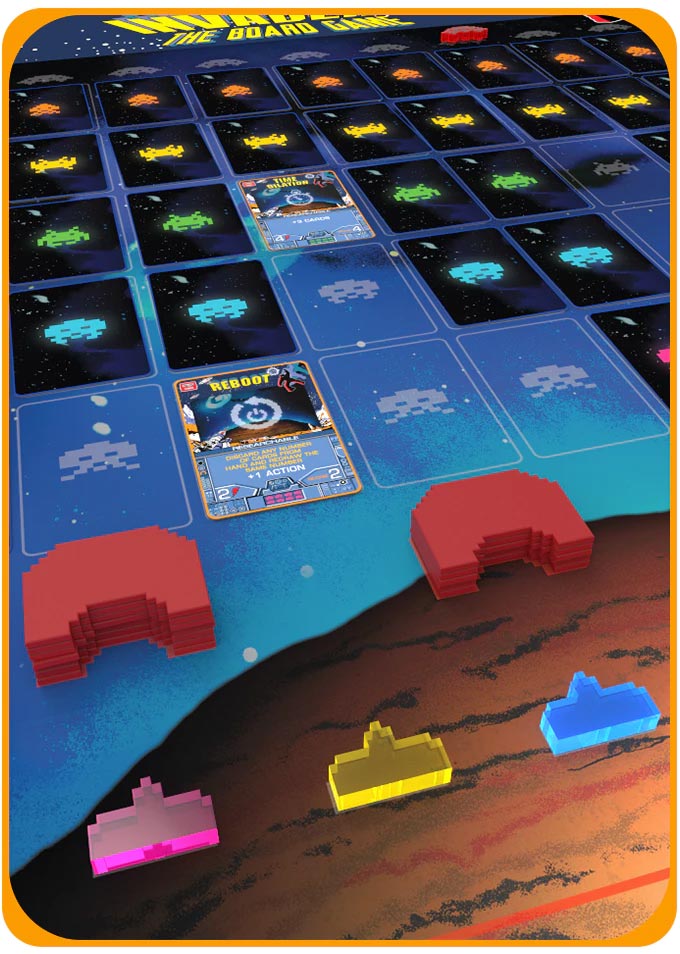 Come per 8Bit Box l’interrogativo resta uguale: Come si fa a trasformare un videogioco del genere in un gioco da tavolo? In questa versione di Space Invaders non saremo soli ma collaboreremo con altri 3 giocatori per difendere la nostra base lunare dagli stessi alieni che quarant’anni fa invasero la Terra ma competeranno per portarsi a casa il maggior numero di punteggi possibile.