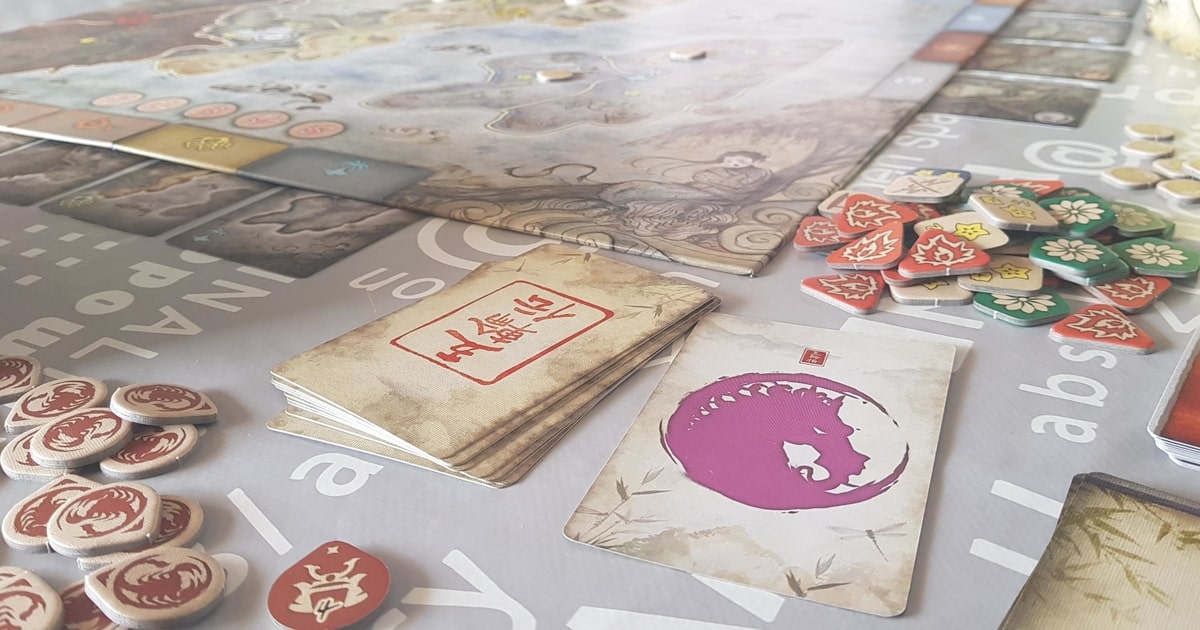 Esteticamente mi piace, la plancia si presenta egregiamente – che parolone -, forse c’è una leggera sovrapposizione di colori tra segnalini e terreni, ma non molto rilevante. Gli schermi del daimyo sono pratici ed eleganti, i segnalini chiari e leggibili, le carte piacevoli al tatto.
