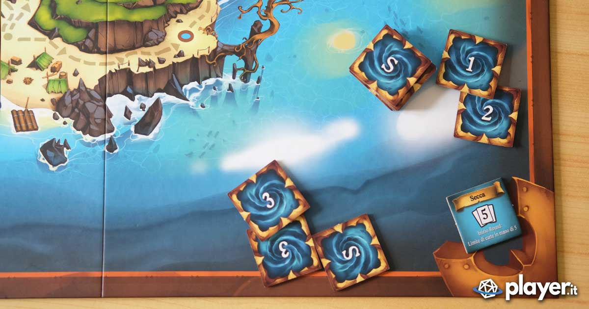Ad ogni giocatore vengono consegnate fino a 5 carte, ognuna con movimenti precisi per la nave, che vanno disposte coperte sul tavolo e rivelate da sinistra verso destra. A turno, partendo dal giocatore con l’iniziativa, vengono rivelate le carte e risolti i loro effetti come: movimento della nave, che può ruotare su se stessa o proseguire nella zona di mare successiva, attaccare una nave nemica (scegliendo tra bordate e cannonate a distanza), ripararsi, arrembare la nave avversaria nella stessa zona di mare per ottenere ciurma, dobloni e quant’altro oppure cacciare sull’isola e spostare il proprio capitano sul tabellone.