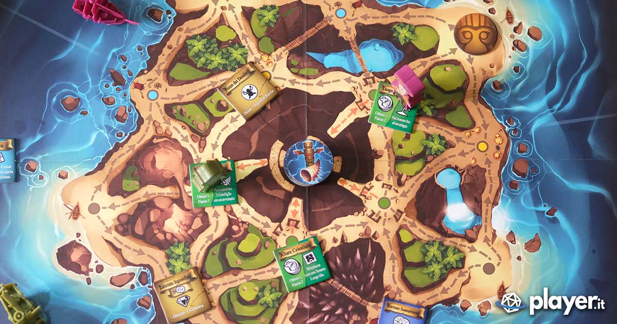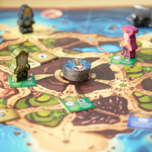 L’azione caccia da il via a quello che potremo definire un vero e proprio gioco dell’oca che porta a spostare il proprio meeple verso il luogo del tesoro. Come ogni giungla che si rispetti però, ogni casella verso il tesoro innesca una tessera luogo di cui si dovranno risolvere gli effetti: le tessere blu aiutano solitamente la nave, quelle gialle fanno guadagnare denaro e quelle rosse, beh, nessun pirata è mai sopravvissuto alle tessere rosse.