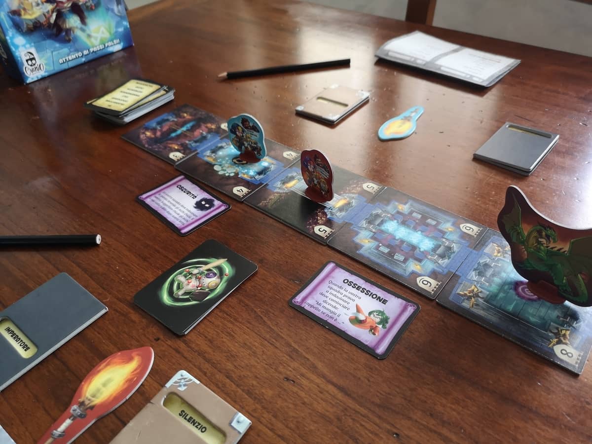 Tutti gli elementi di gioco infatti concorrono a creare la sensazione di esplorare un vero dungeon, a cominciare dalle tessere meravigliosamente illustrate e piene di dettagli (le differenti configurazioni non portano alcuna differenza di gameplay, se non nel numero di parole trappola da scrivere per la singola tessera, nonostante la varietà di ambienti). Anche le carte Maledizione che andranno ad aumentare la difficoltà di alcune stanze con modificatori delle regole sono accompagnate da illustrazioni che ne riassumono bene gli effetti.