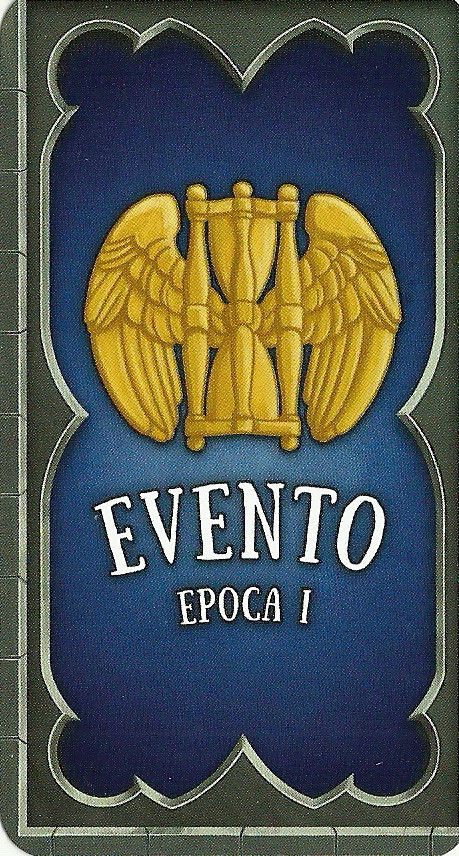 La quantità totale delle Carte Evento si calcola in base al numero di giocatori. Le Carte Evento sono contrassegnate da un numero che corrisponde all’Epoca a cui fanno riferimento. Vi sono tre Epoche, quindi avremo tre mazzi di carte, uno per ciascuna epoca.