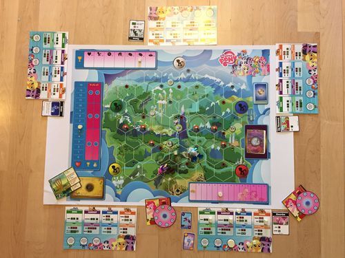 My Little Scythe è un gioco competitivo per tutta la famiglia in cui ogni giocatore controlla 2 miniature di animali che intraprendono un’avventura nel Regno di Pomme. L’obbiettivo è quello di essere il primo a guadagnare 4 trofei da 8 categorie possibili, i giocatori a turno scelgono di spostarsi, cercare o costruire. Queste azioni permetteranno ai giocatori di aumentare la loro amicizia e le loro torte, potenziare le loro azioni, completare le missioni, imparare incantesimi magici, consegnare gemme e mele a Castle Everfree, e magari persino impegnarsi in uno scontro a torta.