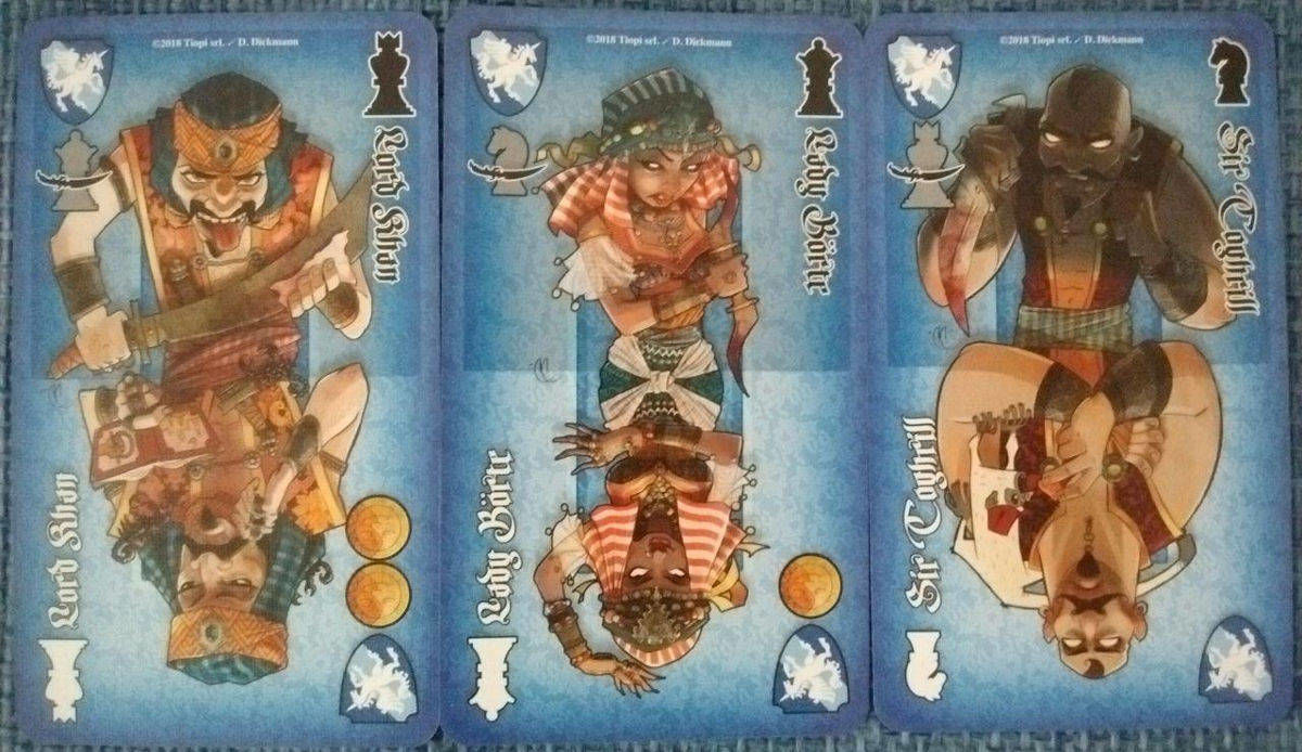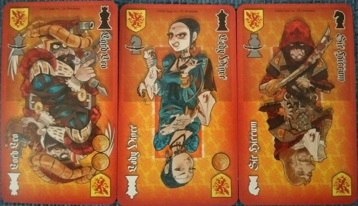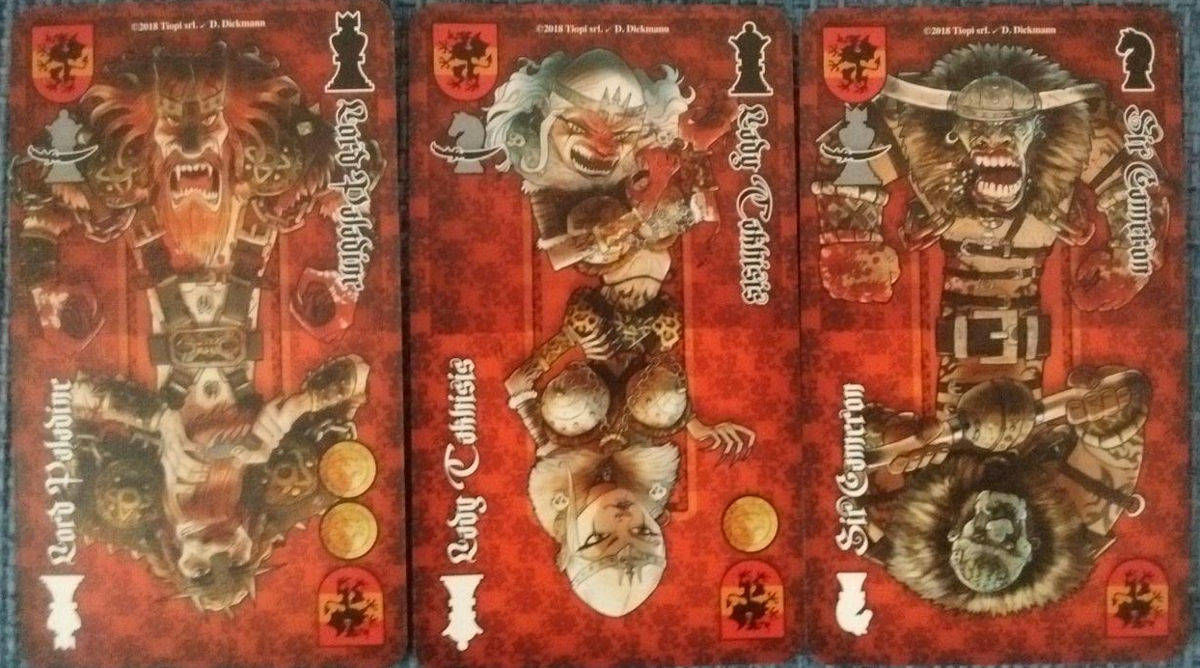 Ma per poter prendere il potere ci serviranno dei sudditi che facciano il lavoro sporco, infatti all’inizio dovremo scegliere una delle sei casate disponibili, partendo dal giocatore che ha sorriso più di recente e proseguendo in senso orario ognuno pescherà quella che gli piace di più, e una volta scelta la casata si entrerà in possesso di 6 carte, di cui una è un Lord, due sono le Lady e tre sono i Cavalieri.