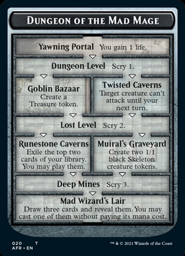 Ogni volta che viene concesso al giocatore, si muove un segnalino attraverso le diverse “stanze” del dungeon seguendo uno dei percorsi tracciati sulla carta. Il funzionamento, insomma, è qualcosa di simile alle Carte Saga già presenti in Magic, ma le opzioni sono diverse, il giocatore può fare delle scelte e, cosa fondamentale, si possono esplorare anche tutti e 3 i dungeon contemporaneamente, come se fossero aree sempre presenti in partita.