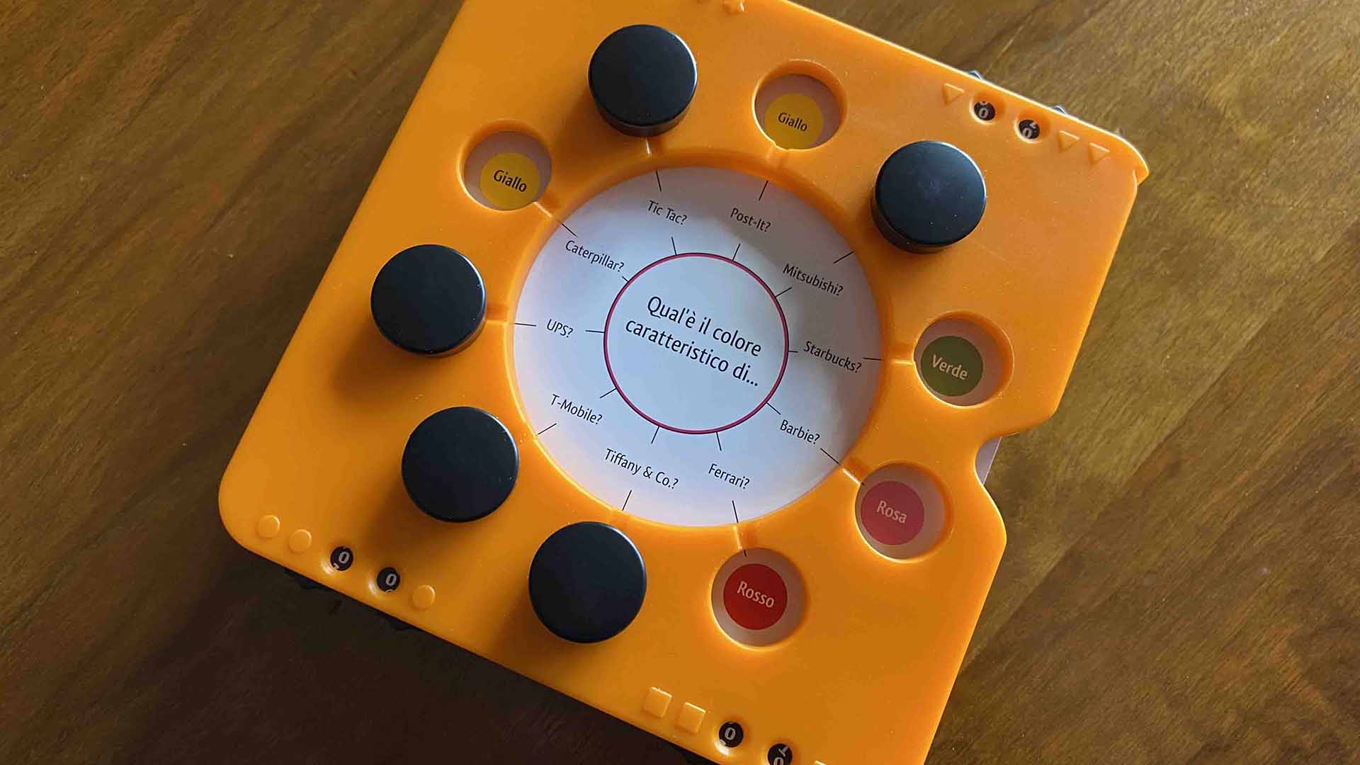 Quando tutti i giocatori hanno passato il turno o quando qualcuno sbaglia, si contano i tappini collezionati e si aggiorna il proprio punteggio. Punteggio che, come visibile dalla foto in basso, è aggiornabile proprio sull’apparecchio ai suoi angoli, dove sono posizionate ben 8 rotelline segnapunti. Smart 10, infatti, è giocabile da 2 fino a 8 persone, ma onestamente nulla vieta in situazioni più affollate di dividersi in squadre, o di segnare i punti a parte su un foglietto se si è troppi.