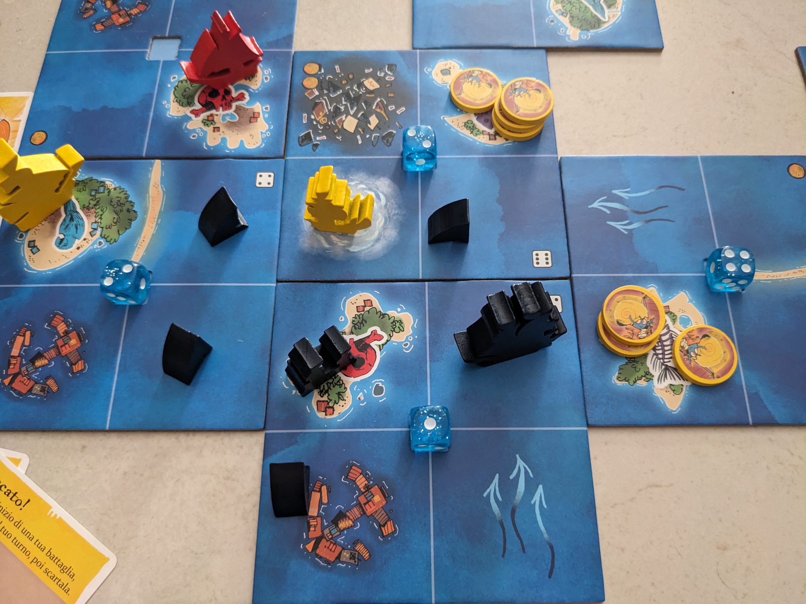 Se non ci fosse il Mercato infatti, che lega un po’ tutti giocatori e offre carte ciurma interessanti che forniscono bonus in battaglia, in esplorazione ecc., non ci sarebbe quasi alcun motivo per intralciare il gioco dei Contrabbandieri che avrebbero ancora più vita facile di quanto già hanno.