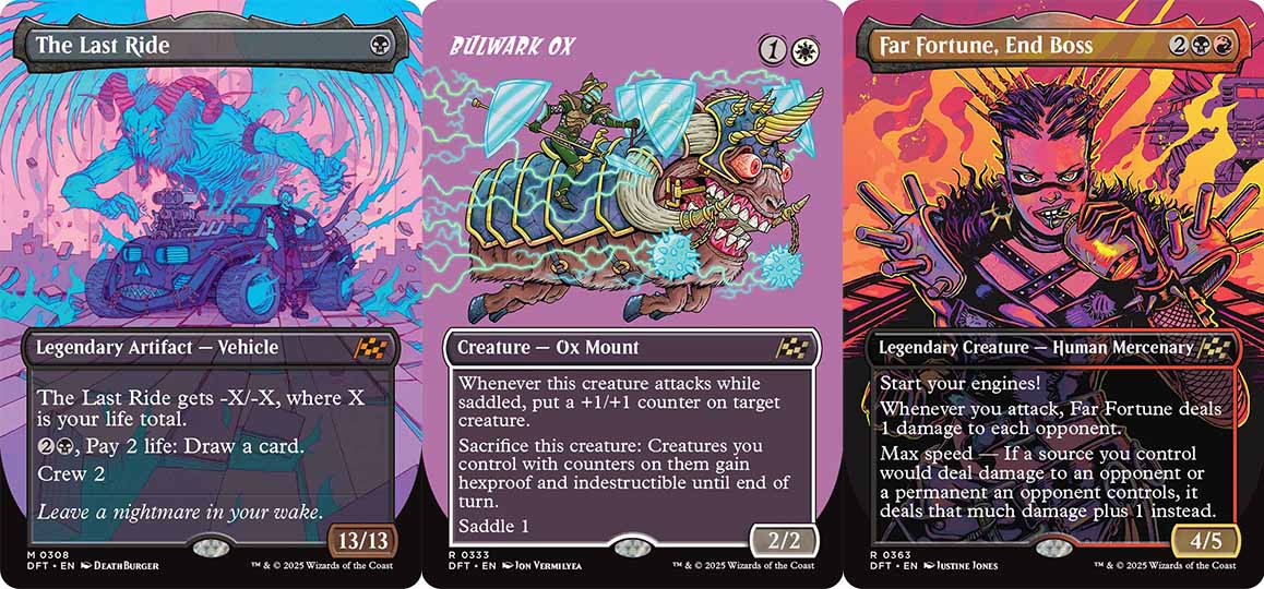 Quale occasione migliore per introdurre un nuovo filone di un multiverso se non con una competizione inter-planare dove diversi team gareggiano con le loro culture dei loro piani e i loro veicoli tipici? È proprio in un momento del genere, una sorta di Wacky Races (o La corsa più pazza del mondo in italiano) che possono essere introdotte le diverse sfaccettature che potremmo incontrare nelle prossime narrazioni di Magic, una sorta di assaggio delle future lore dei piani coinvolti, condita con un po’ di derapate, sgommate e cafonaggine.