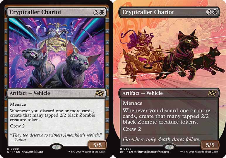 In un’espansione del genere ovviamente sono presenti numerosi tipi di Veicoli, ognuno con caratteristiche che si adattano soprattutto alle strategie dei team di riferimento. Ma tanto sappiamo già che, tra Draft e Constructed, si riuscirà sicuramente a combinare questi Veicoli a tutt’altre squadre e strategie. Piuttosto, è stata introdotta una nuova meccanica che rende alcune carte Creatura alla stregua di Veicoli: Saddle. La Creatura che la possiede funziona come una creatura normale, ma quando viene sellata alla strega dell’abilità Equpaggio dei veicoli, essa può avere nuovi effetti.