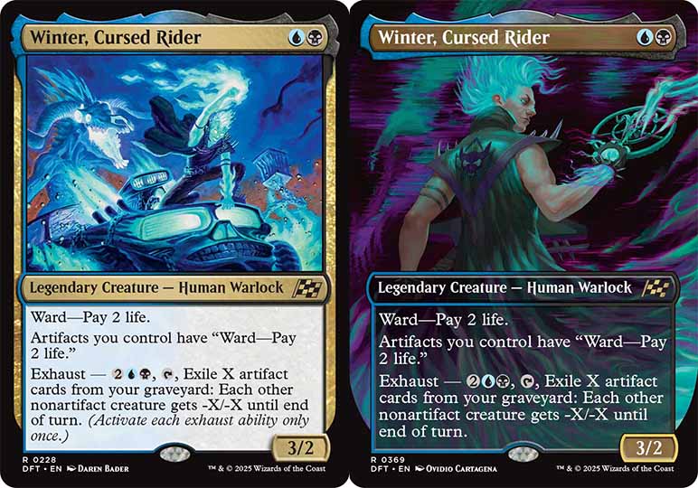 Questo Team, capitanato dal warlock Winter, gareggiano al Gran Premio per cercare di superare la maledizione a cui proprio Winter è andato incontro: la possessione dello Speed Demon: nel caso vincessero l’Aetherspark, Winter si libererebbe del demone. In questa crew possiamo trovare vecchie conoscenze di Duskmourn e altri personaggi impossessati da fantasmi e demoni. L’estetica segue un po’ quella dei fumetti dark negli anni ’80, con full art un po’ crunchy e rumorose.