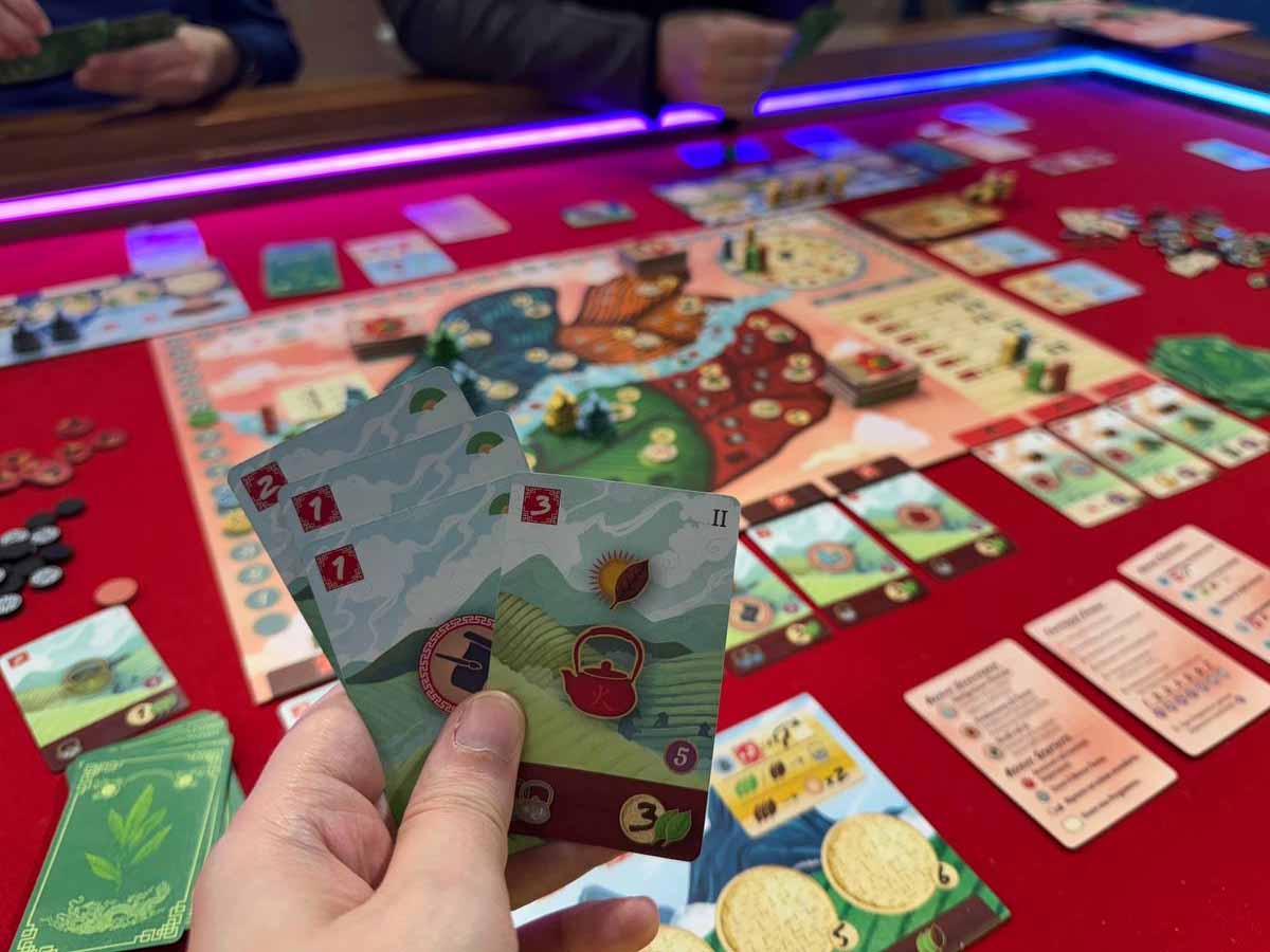 Tutto ruota attorno al piazzamento strategico di edifici, al deckbuilding, e alla gestione della risorsa della foglia di té in una duplice valenza. L’elemento che più contraddistingue Tea Garden, infatti, è proprio questa risorsa ambivalente, sagomata a forma di foglia di tè, che può essere tenuta pura o può essere fermentata (a un costo preciso) per dare effetti differenti.