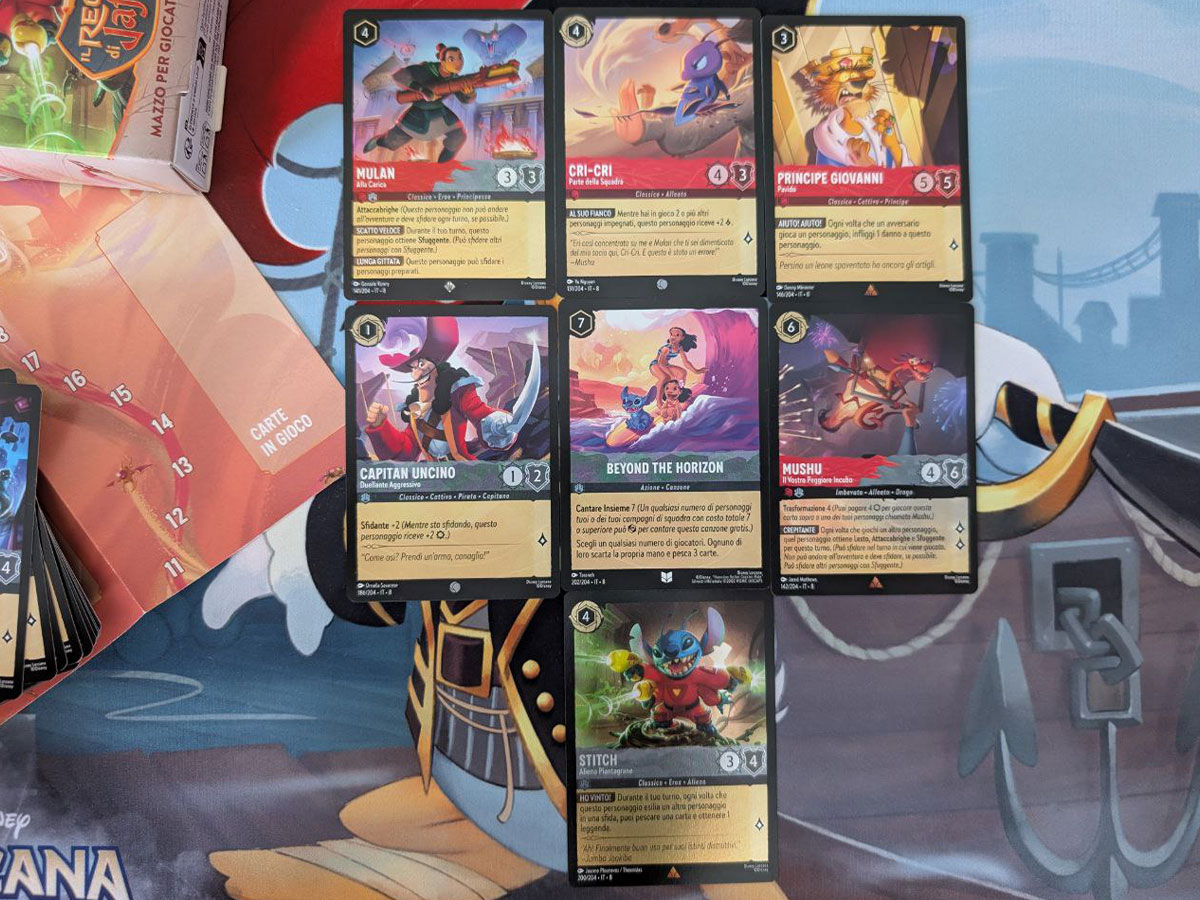 C’è poi un’interessante Mulan che sfida i personaggi preparati, il ritorno di Capitan Uncino Duellante aggressivo, che torna con una nuova art e che quindi rimane valido anche dopo la rotazione e il nuovo Cri-Cri che ottiene due lore aggiuntive se in campo ci sono almeno altri 2 personaggi.