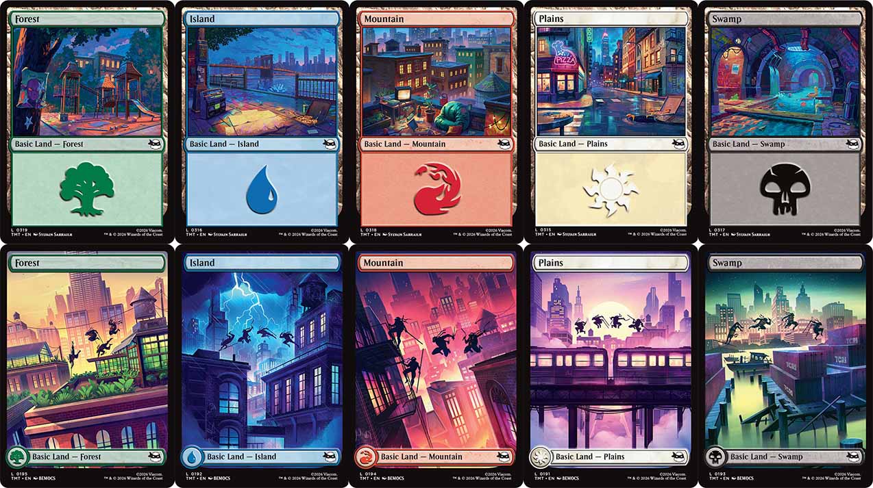 Magic torna a New York dopo il set dedicato a Spiderman, ma stavolta sotto una prospettiva diversa. Al di là del brand delle Tartarughe Ninja profondamente diverso da quello Marvel, il punto di vista adottato dal design delle carte è stato riassunto nell’evento di anteprima come uno scorcio della Grande Mela profondamente diverso da quello visto nel set di Spiderman: qui c’è la New York della vita quotidiana, e non la New York da copertina.
