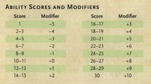 Il manuale indica due modi per determinare i punteggi alle caratteristiche. Quello canonico, e la variante. Quello canonico consiste nel tirare 4 dadi a 6 facce scartando il peggiore, ottenendo così un valore da 3 a 18. Si ripete l’operazione per un totale di sei volte, e poi si distribuiscono i sei numeri ottenuti, nelle sei caratteristiche a piacimento. Questo può generare personaggi molto sbilanciati, esageratamente forti oppure debolissimi, creando anche squilibri all’interno del gruppo. Lo consiglio solo per un tipo di gioco ad alta mortalità e dallo stile “vecchia scuola”.